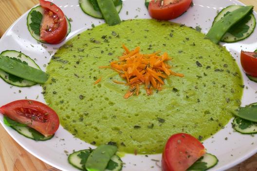 Pineapple - parsley - soup with sugar peas