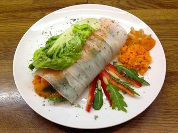 - Zucchini - Rollen mit Karotten, Sesam und Mango - Sauce