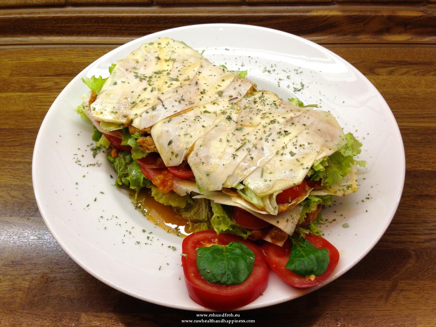 Raw vegan Lasagna with kiwi - date -sauce
