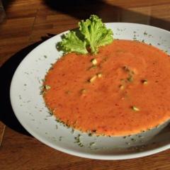 Tomatoe - nectarine soup with some pieces of zucchini. Yummy. ❤️