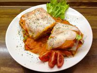 Pumpkin - radish - lasagna with persimmon - peppers - sauce