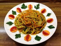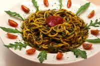 Zucchini - carrot - "pasta" with mango - parsley - sauce